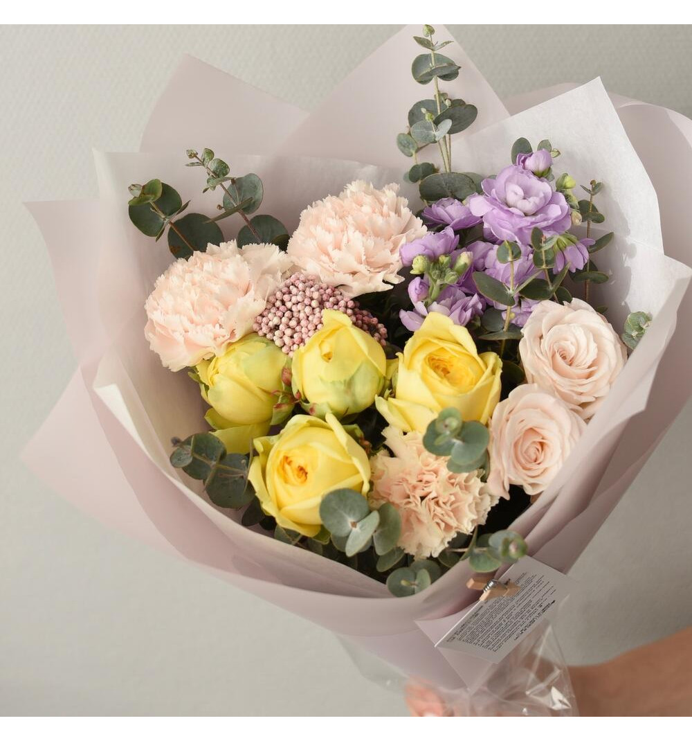 Этот уникальный букет обладает свежим и ярким лимонным оттенком, создавая атмосферу радости и света. В его состав входят маттиола, озотамнус, кустовая роза Бомбастик, эвкалипт, и диантус, придающие композиции свежести и изящности. Букет также упакован в стильную дизайнерскую обертку, которая подчеркивает его уникальность и шарм. Подарите этот яркий букет, чтобы выразить свои чувства и создать незабываемые моменты для вашего получателя.