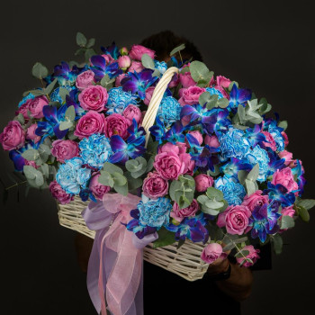 Корзина с кустовыми пионовидными розами "Черничный взрыв"140 000 ₸